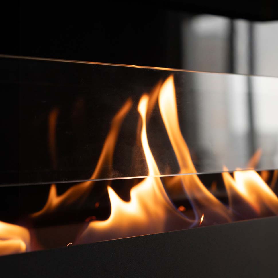 Защитное, закаленное стекло и стемалит на боковых стенках очага создают зеркальное отражение и придают пламени увеличенный объем