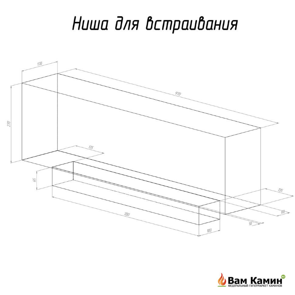 Встраиваемый биокамин ELLIOT Horizontal 1200 предназначен для встраивания в глухие ниши из гипсокартона, кирпича, пеноблоков, бетона.