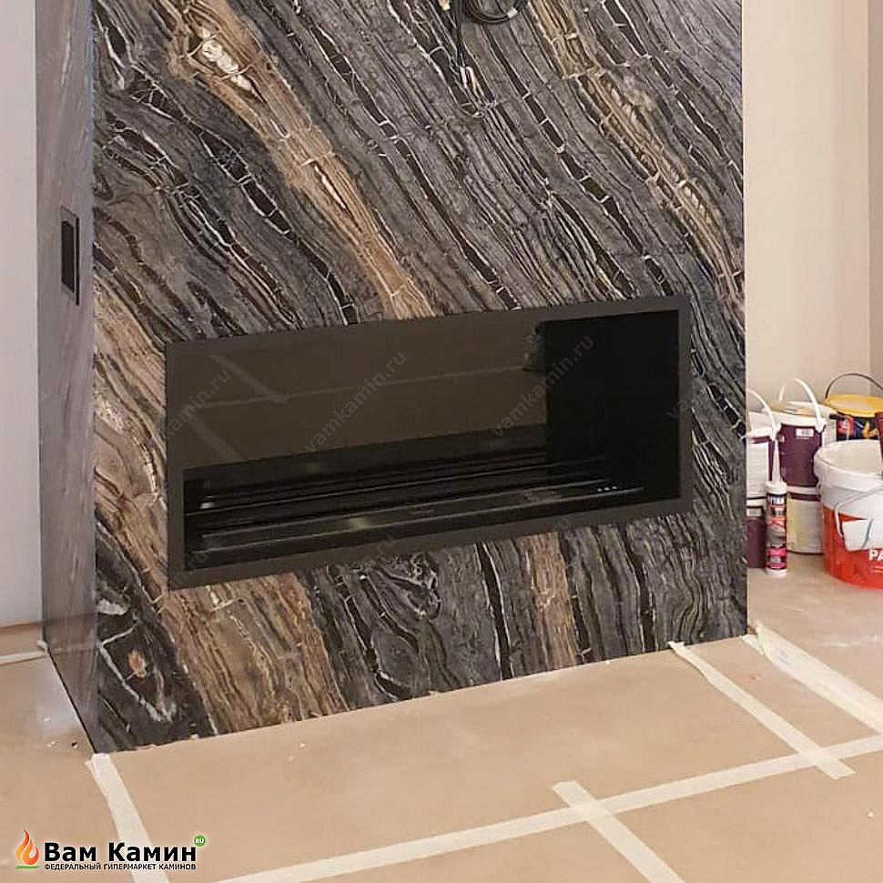 Камин в нишу с камнем после установки
